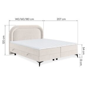 „Mela“ lova sukurta atsižvelgiant į maksimalų miego komfortą ir funkcionalumą. Jos pagrindas – aukštos kokybės H3 kišeninių spyruoklių čiužinys, 20 cm aukščio, užtikrinantis stabilią, bet lanksčią atramą. 7 kietumo zonų naudojimas leidžia puikiai prisitaikyti prie natūralių kūno linkių, paremti stuburą ir sumažinti raumenų įtampą. Atskirose 12 cm aukščio kišenėse esančios spyruoklės veikia nepriklausomai, todėl užtikrinamas puikus taškų elastingumas ir patogus miegas – net ir dažnai keičiant padėtį. Patvarus ir elastingas T21 putplastis papildo konstrukciją, padidindamas komfortą ir čiužinio ilgaamžiškumą. Be to, du praktiški patalynės skyriai leidžia laikyti būtiniausius daiktus lengvai pasiekiamoje vietoje, todėl lova yra ne tik poilsio vieta, bet ir praktiškas jūsų miegamojo elementas.