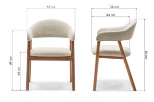 Minkšta, putplasčiu užpildyta sėdynė garantuoja išskirtinį sėdėjimo komfortą. Šviesiai riešutmedžio spalvos lakuotos ąžuolo kojos suteikia elegancijos, ne tik užtikrindamos stabilumą, bet ir suteikdamos interjerui natūralaus grožio. Praktiški porankiai padidina komfortą, leidžiantys patogiai laikyti rankas sėdint. Puikiai tinka svetainei, valgomajam ar biurui, „Sorrento“ kėdė suteikia stiliaus ir šilumos bet kokiam interjerui, puikiai papildydama tiek modernų, tiek klasikinį interjerą. Rinkitės „Sorrento“ kėdę, kad kasdien patirtumėte neprilygstamą komfortą ir eleganciją.