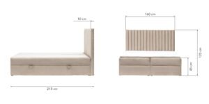 Aukštas galvūgalis su vertikaliomis siūlėmis ne tik pagerins kambarį, bet ir suteiks patogią atramą. Papildomą patalynę, pagalves ar antklodes galite lengvai laikyti dviejuose praktiškuose skyriuose su spyruokliniais pakėlėjais. Visas baldas aptrauktas minkštu ir maloniu liesti aksominiu audiniu, kuris jūsų miegamąjį pavers ne tik jaukiu, bet ir neįtikėtinai stilingu.
